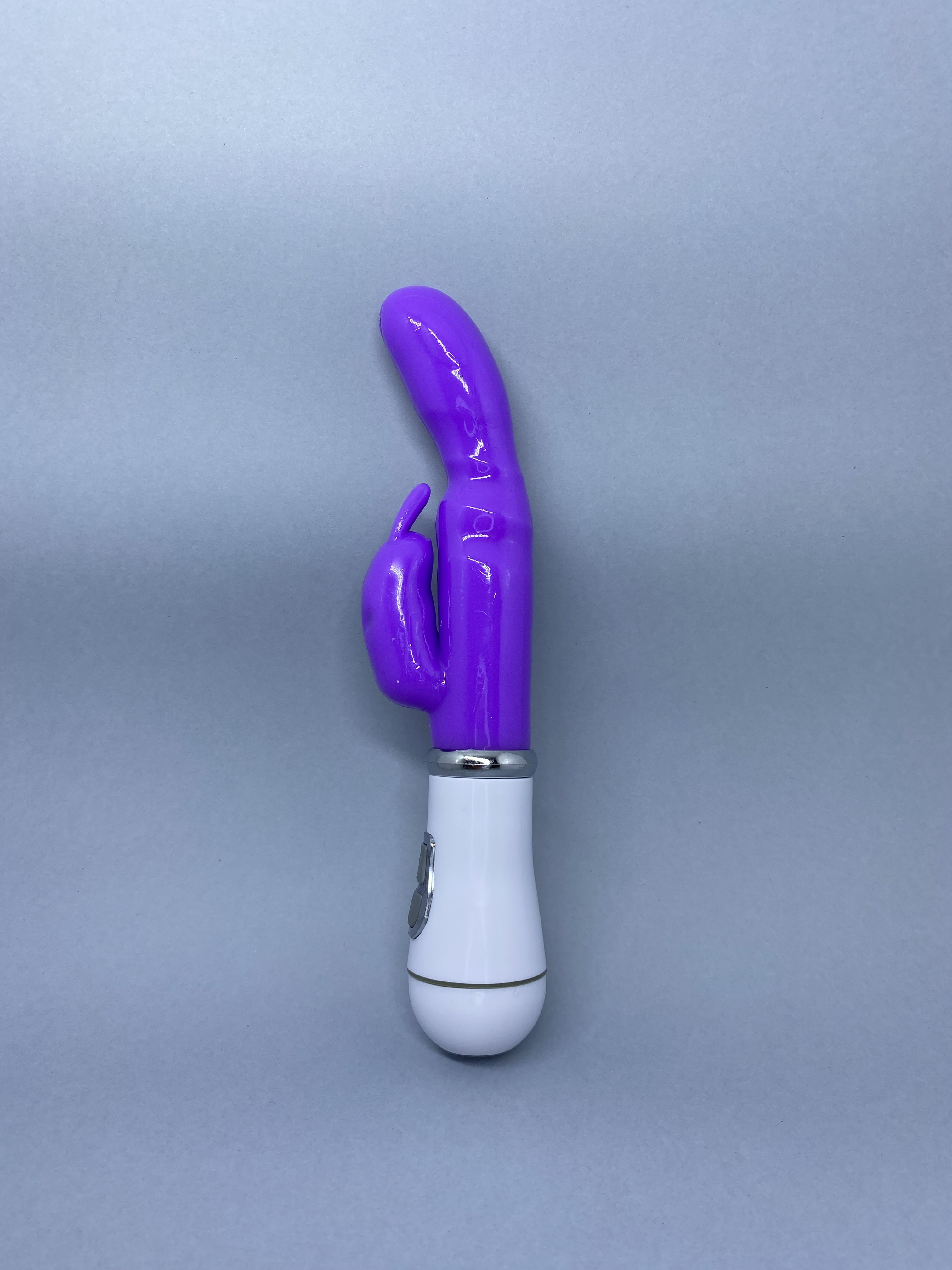 Vibrador estimulador do ponto G em silicone jelly com estimulador clitoriano em formato rabbit.